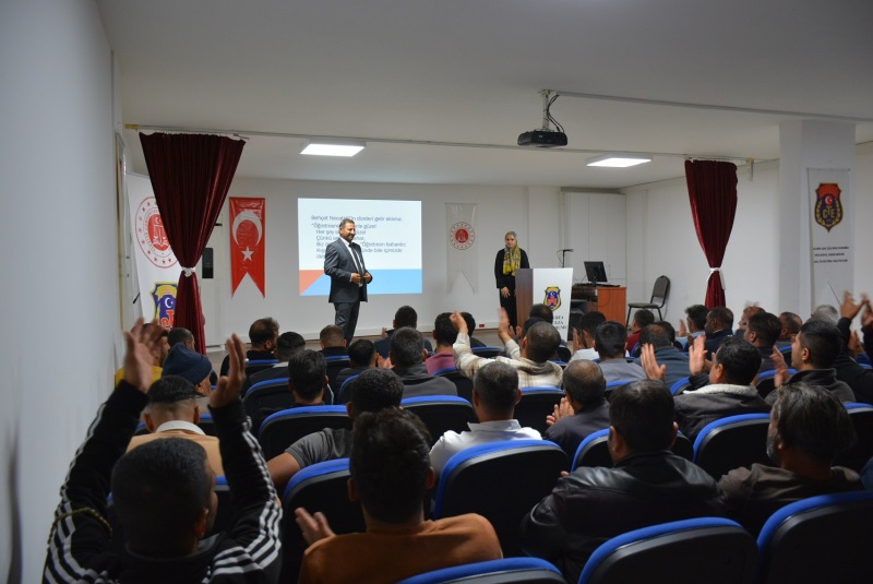 Seminerde öğretmenliğin yalnızca bilgi aktarmak değil, aynı zamanda insanlara yön veren, hayata dokunan kutsal bir meslek olduğu vurgulandı. Hasan Yıldız ve Müzeyyen Şengül, kendi mesleki deneyimlerinden de örnekler vererek hükümlülerle etkili ve samimi bir sohbet gerçekleştirdi.